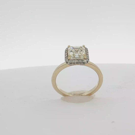 14K Yellow Gold Engagement Ring with 1.71 Square Cut Diamond with 0.32 ct Pave