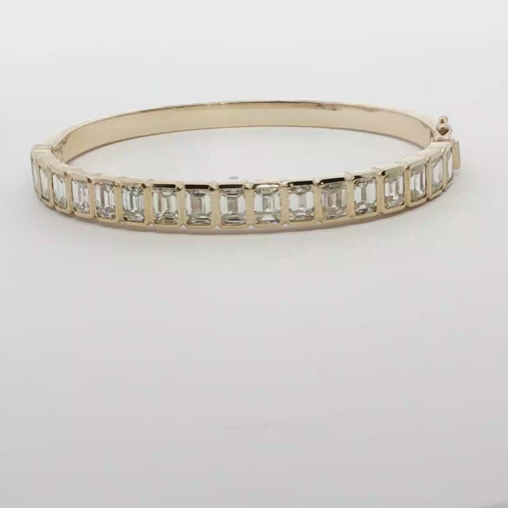 Elevate your style with this exquisite yellow gold tennis bracelet. Featuring meticulously step cut emerald shape diamonds, this bracelet exudes sophistication. The diamonds are carefully set to maximize brilliance, creating a captivating display of light and luxury. A timeless piece, perfect for adding a touch of glamour to any occasion.