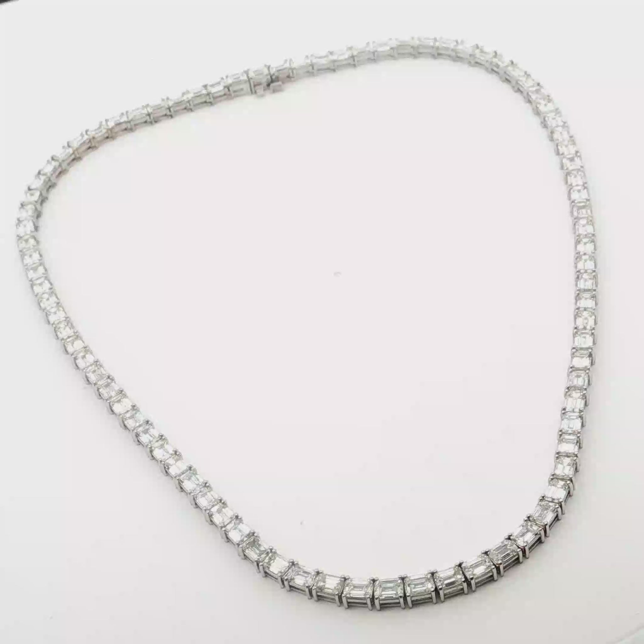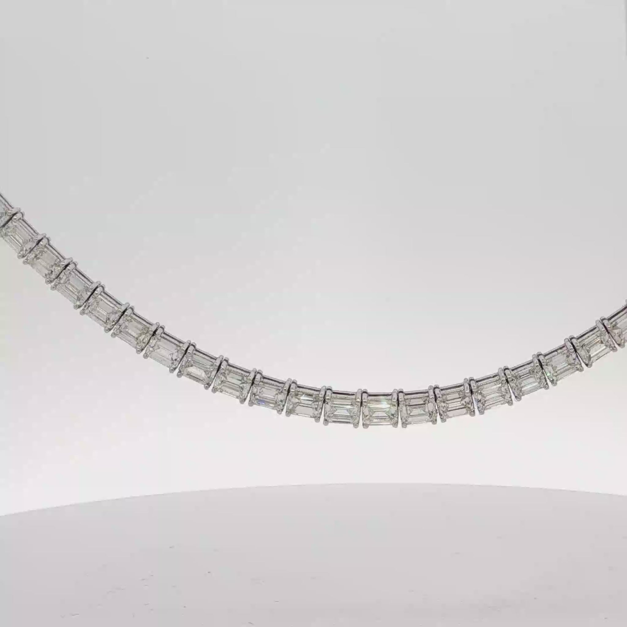 27.27CT, 85 stones, One of a kind Emerald Cut Diamond 18K White Gold Necklace