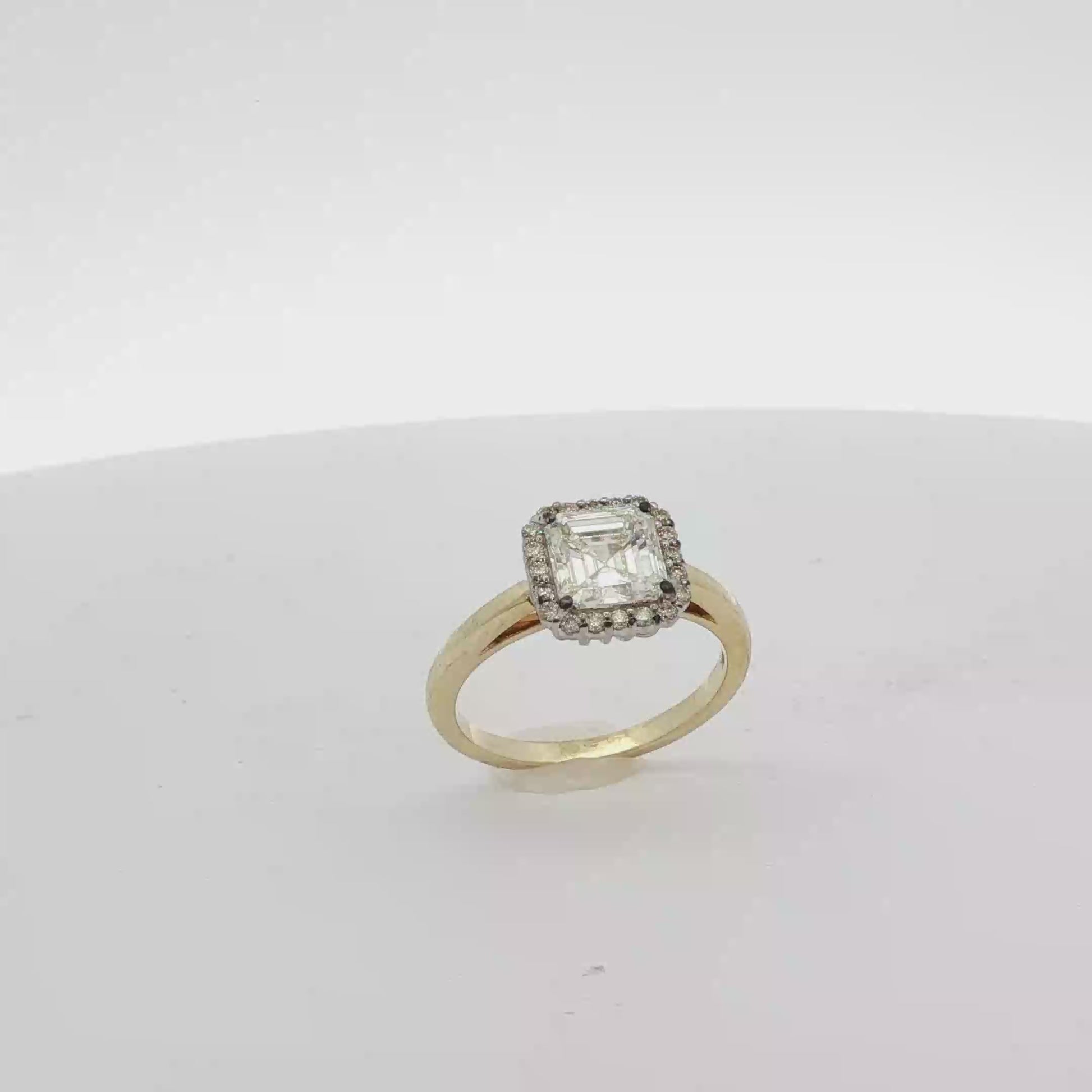 One of a kind 1.50 Asher Square Cut Diamond Halo Engagement Ring in Yellow 18K Gold