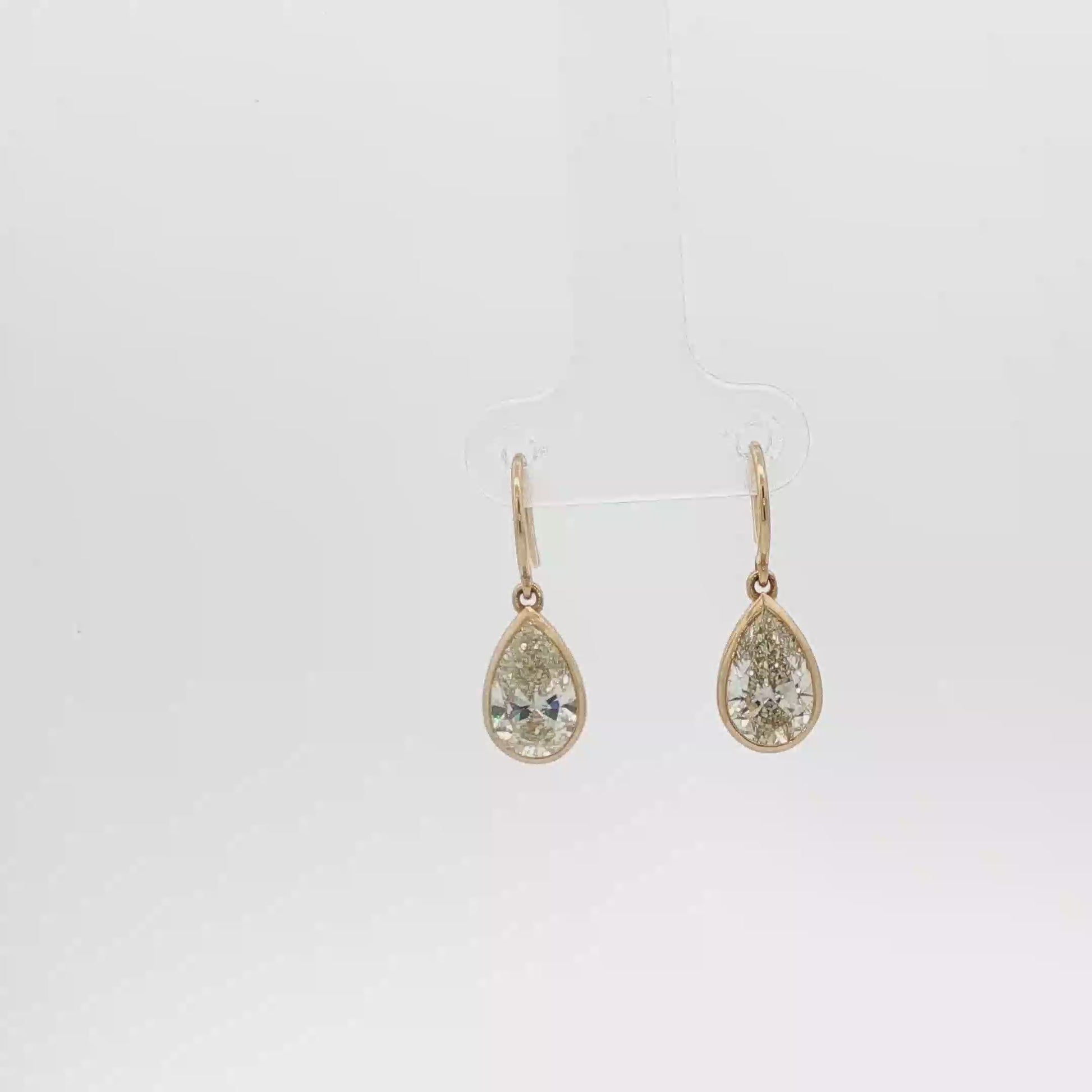 Radiant and unique, these drop earrings feature pear-shaped diamonds. The diamonds showcase a mixed cutting style, maximizing their brilliance. Set in warm yellow gold, these earrings offer a captivating blend of sophistication and distinctive charm, perfect for adding a touch of subtle color to any ensemble.
