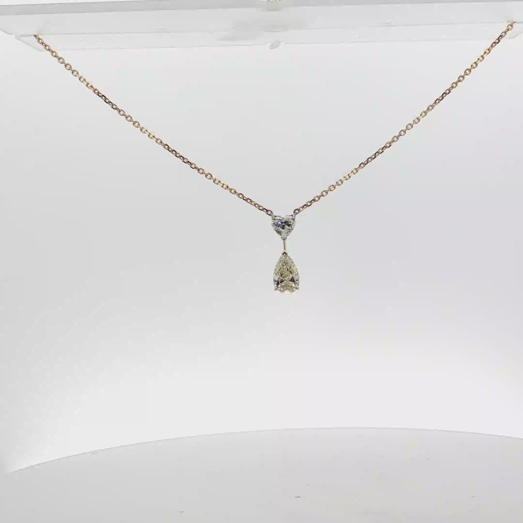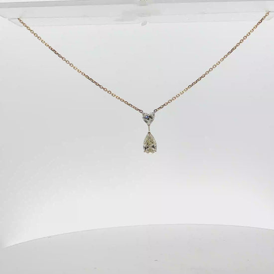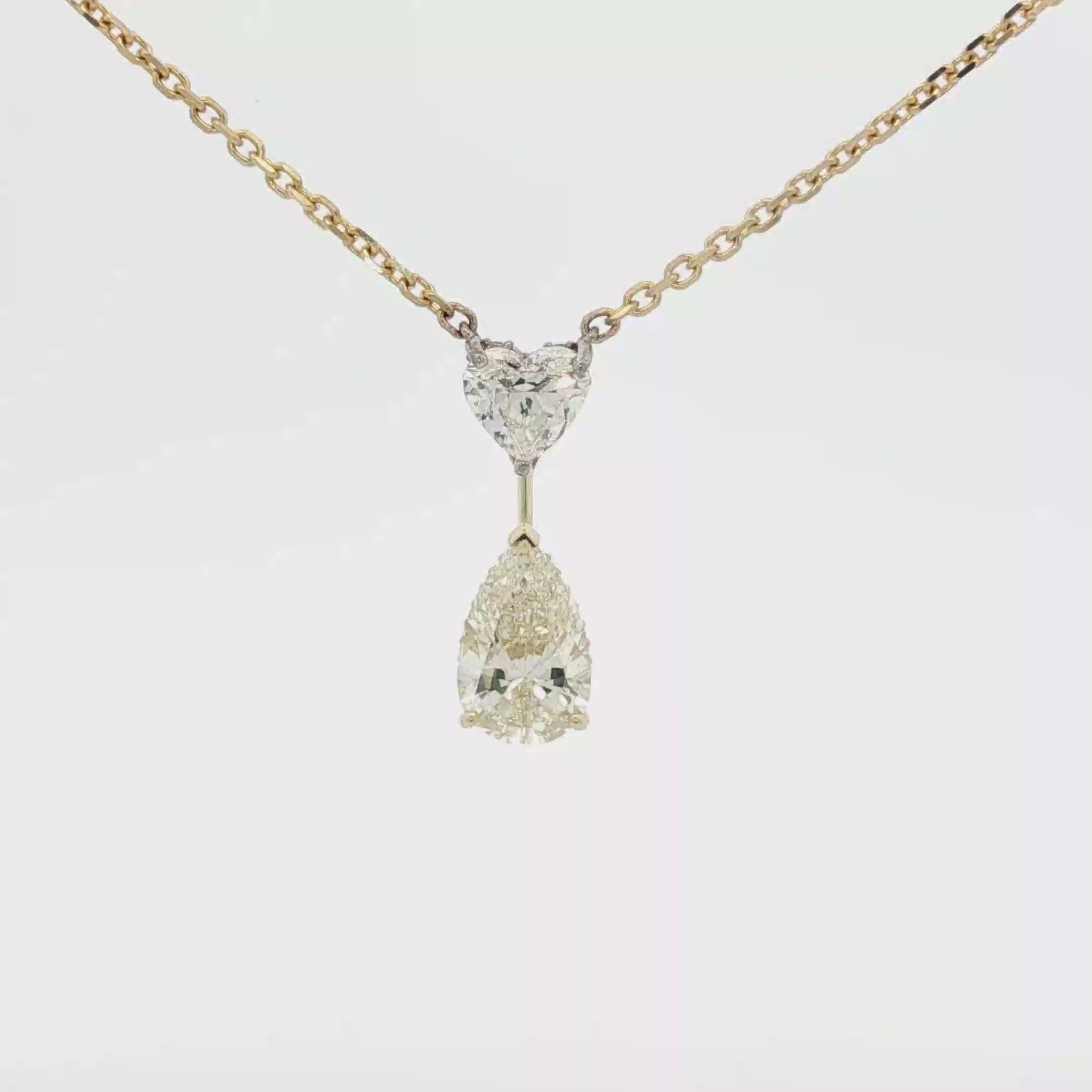 Yellow Gold Necklace with Heart shape and Pear Cut Diamond Pendant