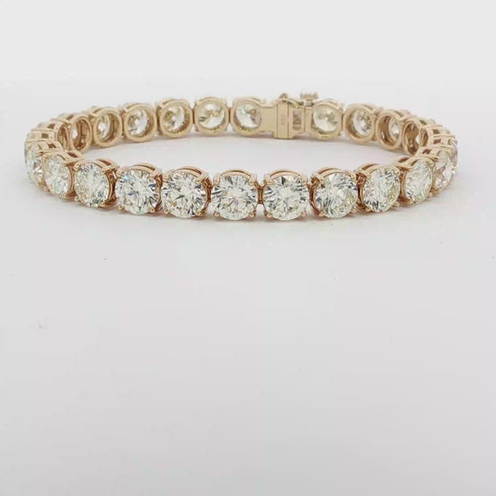 Request PricingIndulge in the brilliance of this exquisite yellow gold tennis bracelet, meticulously crafted with a series of 26 round cut diamonds with 27.40 CT weight. The diamonds showcase a brilliant cutting style, enhancing their sparkle and fire, creating a mesmerizing display of light and luxury. A timeless statement piece for any occasion.